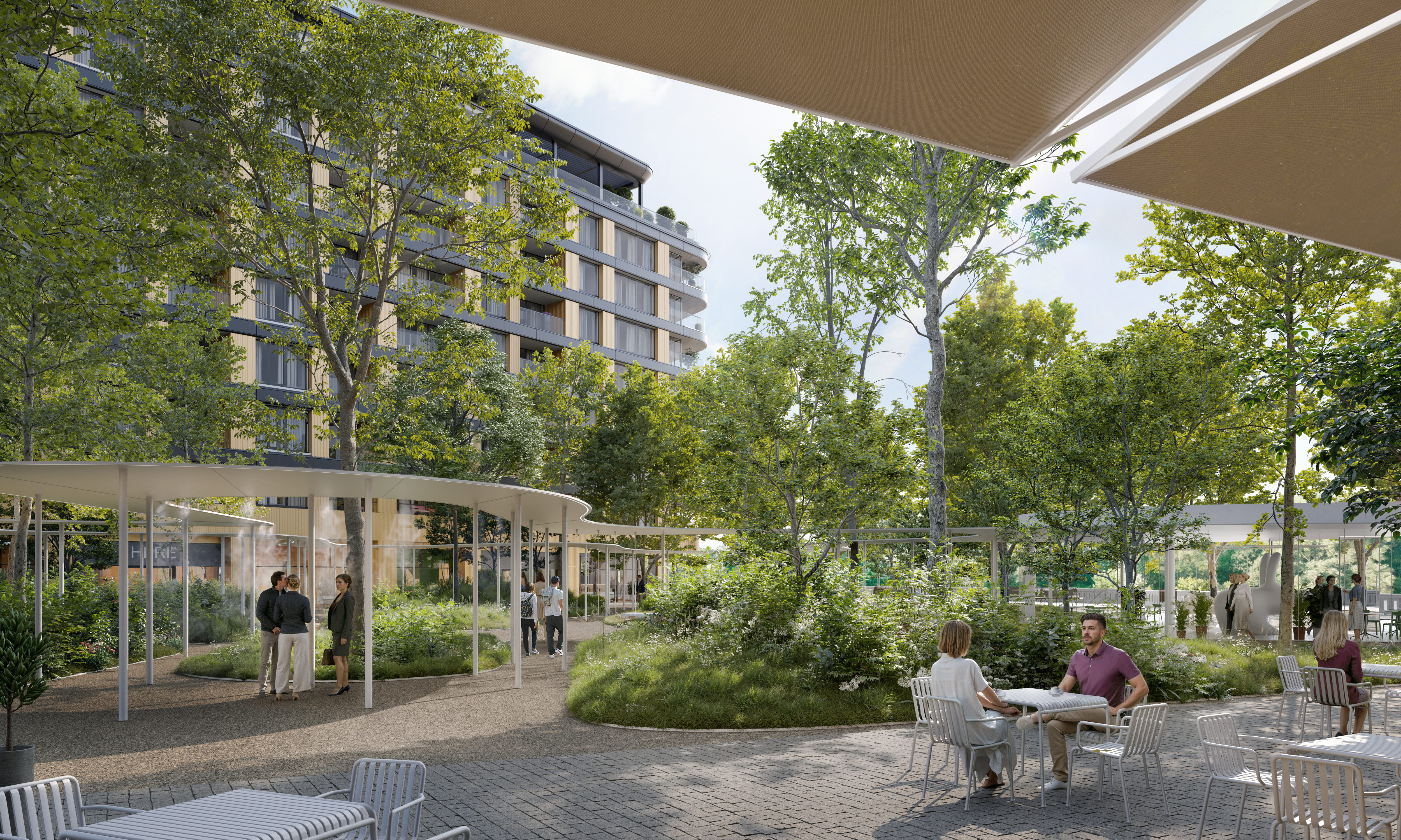 Významným verejným priestorom bude zelené Lanfranconiho námestie s rozlohou približne 2 600 m², ktoré navrhli víťazi architektonickej súťaže z ateliéru BETWEEN. Stromoradia, zelené ostrovy a trávniky tu vytvoria príjemné miesto na oddych s jedinečnými výhľadmi na Dunaj. Súčasťou novej etapy bude aj rozsiahly rezidenčný vnútroblok plný zelene, ktorý vytvorí prirodzene oddelené a pokojné zázemie pre obyvateľov. Zeleň, oddychové miesta a premyslené urbanistické riešenie prinesú dôležitý balans medzi mestským životom a súkromím.