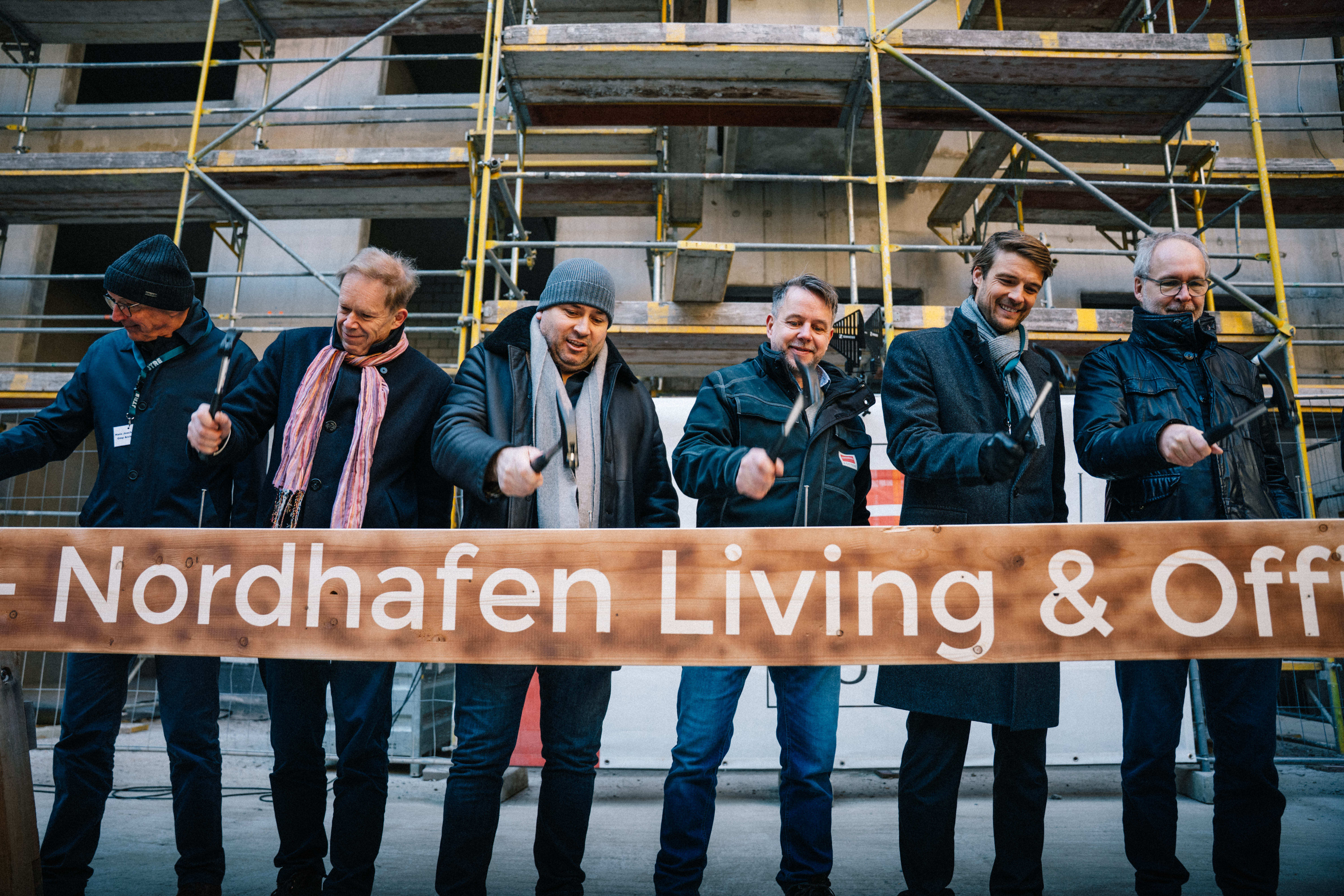 Slávnostné dokončenie hrubej stavby projektu Nordhafen Living & Office. Dôležitý míľnik v Berlíne.
